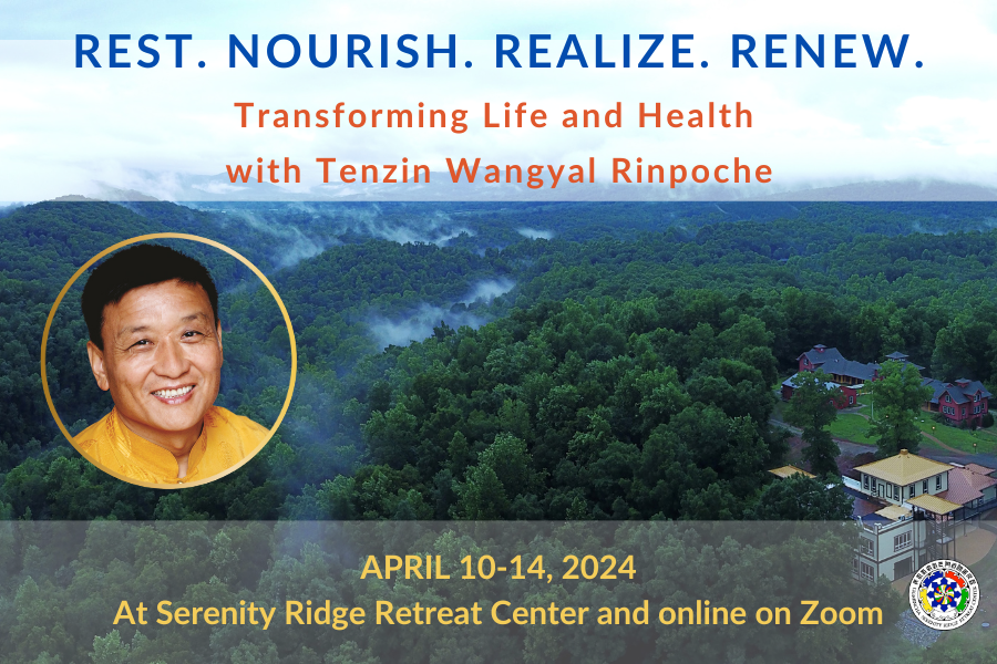 Over four days, Tenzin Wangyal Rinpoche and guests will share ancient methods, supported by modern research and scientific findings, to realize our inner source of well being and grow beyond often unconscious self-defined limits to engage with our lives in creative, inspired and fun ways. We will discover ways to release stress, decrease anxiety, rebalance energy, deepen inner peacefulness, and reconnect to ourselves and the world around us. Be empowered to make healthier choices that support your wellness on every level!