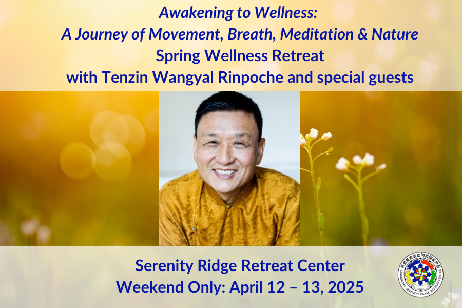 Over these rejuvenating four days, Tenzin Wangyal Rinpoche and special guests Tawni Tidwell, Dr. Danny Lewin and Nick Polizzi will share ancient methods alongside modern research and scientific findings focused on spiritual, mental and physical well-being. This retreat is designed to help you uncover your inner source of well-being and transcend self-imposed limits, empowering you to engage with life in creative, inspired, and joyful ways. We will explore techniques to release stress, decrease anxiety, rebalance energy, deepen inner peace, and reconnect to ourselves and the world. Be empowered to make healthier choices that bolster your wellness on every level!