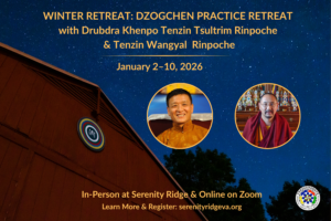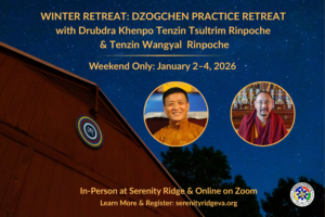 Come practice Dzogchen meditation with a true master of the Bön tradition! January 2–4, 2026, Weekend Only Drupdra Khenpo Rinpoche is the Abbot of the meditation school at Triten Norbutse in Nepal. He is an exceptional teacher and practitioner, recognized for his deep knowledge and dedication to the practices of Tsa Lung and Trul Khor. […]